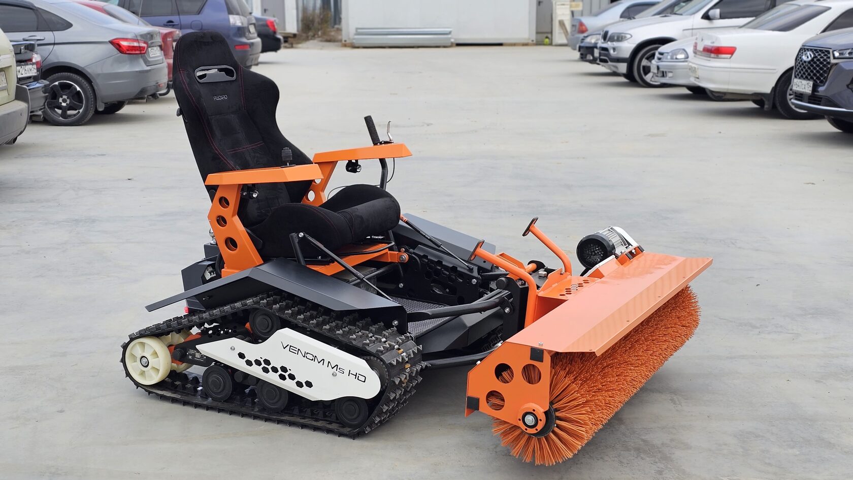 Веном МС - Гусеничный снегоуборщик ВЕНОМ МС комплектация с механическим поворотным отвалом (поворот за счет ног,специальным механизмом) и представляет собой мощную машину, предназначенную для эффективной очистки снега с дорог, тротуаров и других территорий в зимний период. Управление осуществляется с помощью джойстика, который позволяет оператору легко и точно управлять движением машины и направлением отвала, а также регулировать скорость.