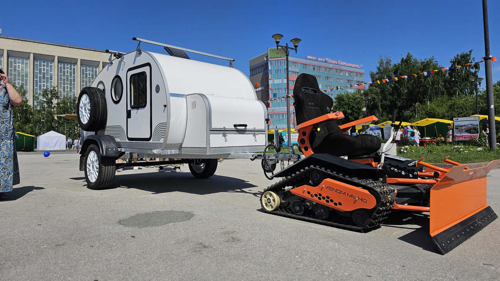 На площади Пименова были представлены разные отрасли производства — в том числе пожарная техника МЧС и пожарные ретроавтомобили, роботизированные платформы на гусеничном ходу от компании ROBCOM, прицепы и кемперы для автотуризма и многие другие.
